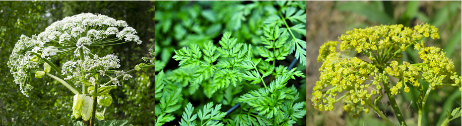 Parsley Family: The parsley (Apiaceae) plant family includes several plants commonly found in the ROW that can pose serious health risks if handled without proper identification. Key features of these plants include: umbrella-shaped flower clusters (umbels), hollow or grooved stems, feathery or fern-like leaves, and a strong celery-like odor when crushed. Plants in the parsley family can vary in size and color, but these shared traits help distinguish them from look-alikes.